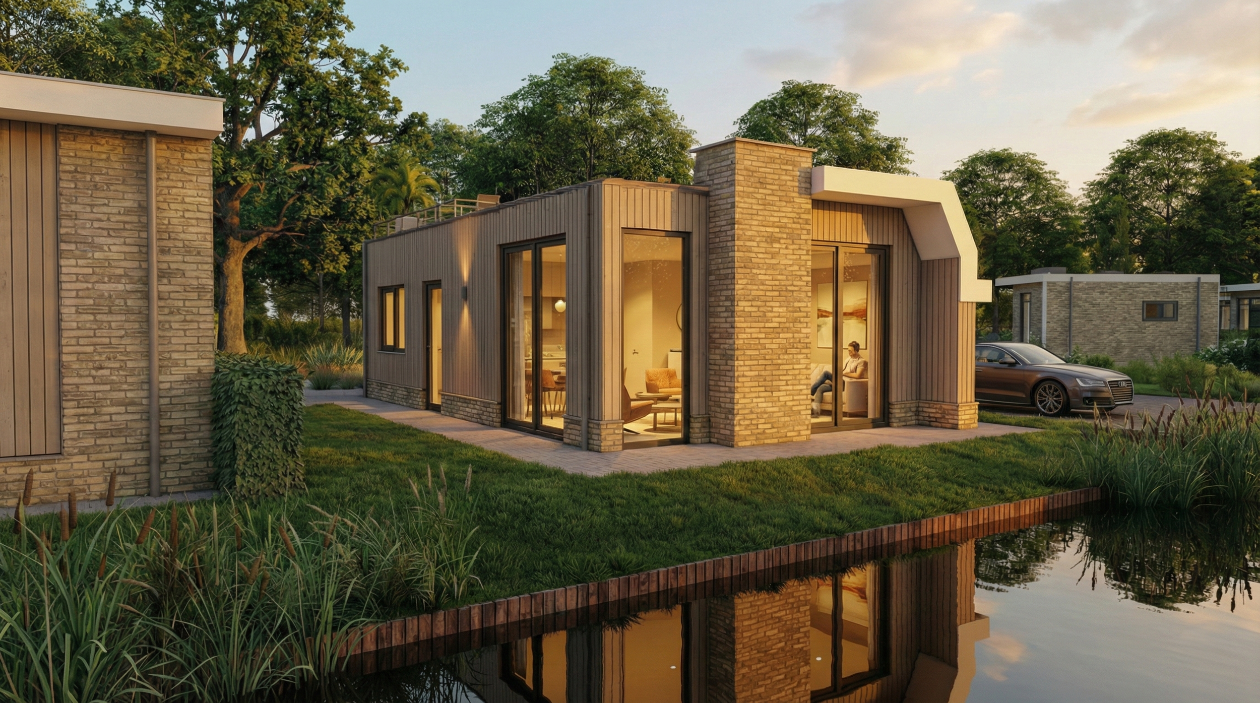 Binnen is de vakantiewoning praktisch en comfortabel ingedeeld. De lichte woonkamer vormt het hart van de woning en sluit mooi aan op de keuken. Met twee slaapkamers en een apart toilet biedt deze Waterlodge extra gemak en privacy; ideaal voor gezinnen of gasten.